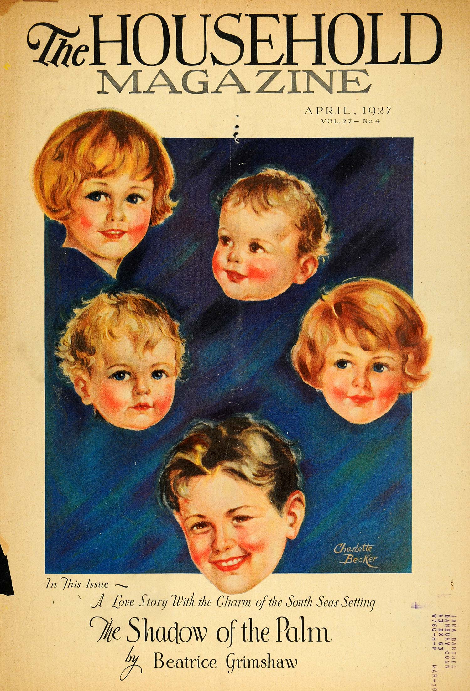 This is an original 1927 color cover for the April issue of The Household Magazine, featuring artwork of children's faces by Charlotte Becker.CONDITION