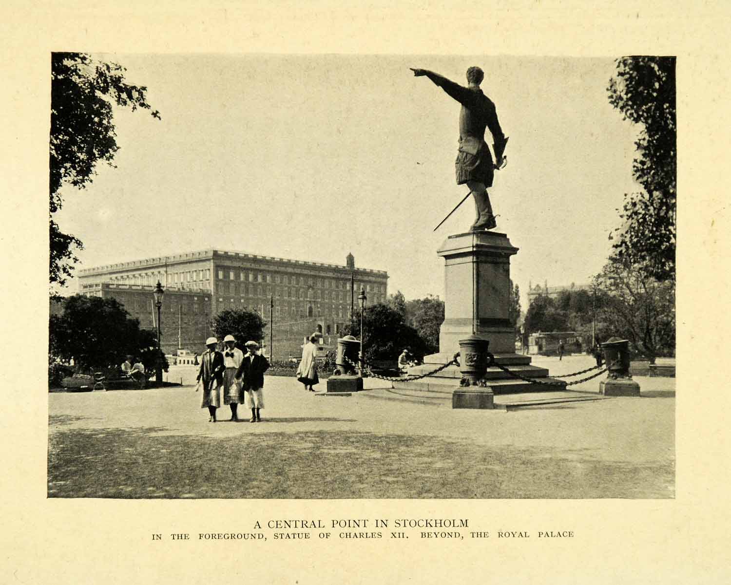 This is an original 1927 black and white halftone print of "A Central Point in Stockholm" in Sweden.