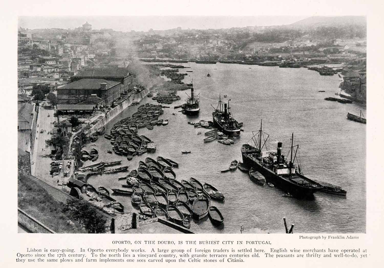 This is an original 1927 black and white halftone print of a view of Oporto on the Douro River in Portugal. Photography courtesy of Franklin Adams.