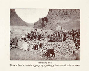 This is an original 1927 black and white halftone print of an African shepherd boy playing his flute to his flock of goats. After all, his parents did tell him to play with kids his own age.