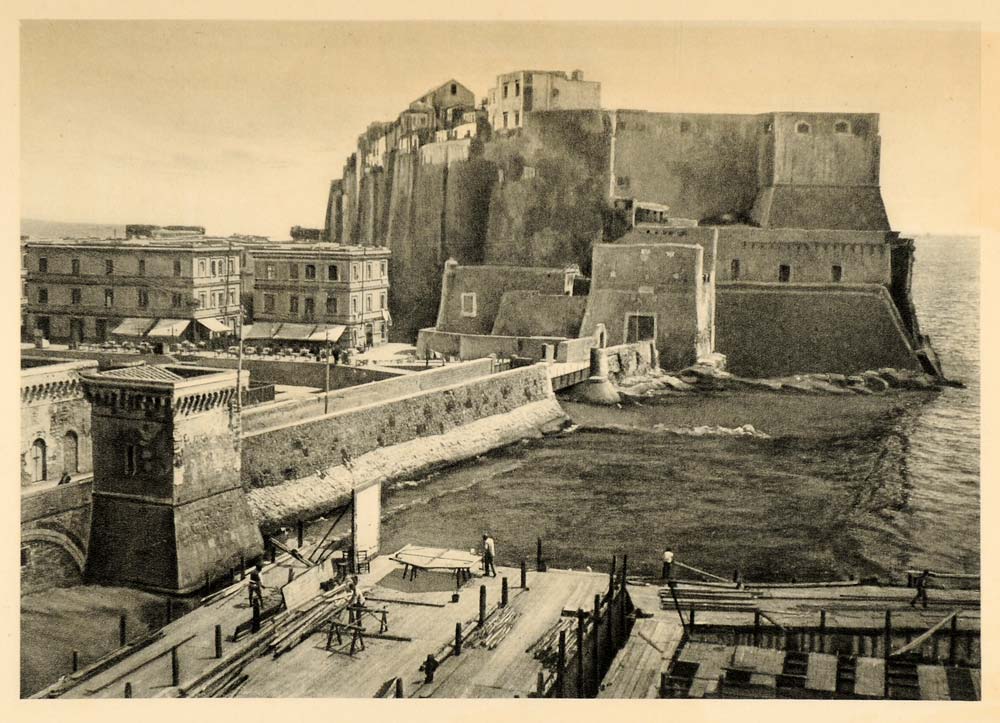 1927 Naples Napoli Italy Castel dell'Ovo Gulf Castle - ORIGINAL PHOTOGRAVURE IT3