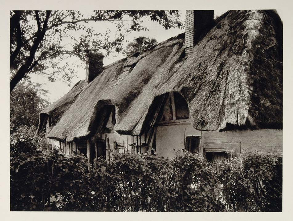 This is an original 1927 photogravure of a typical peasant's home with a thatched roof in Normandy, France. Photograph by Martin HŸrlimann.