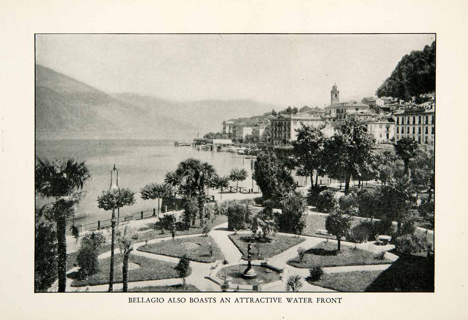 This is an original 1927 black and white halftone print of the vista of Bellagio on Lake Como.