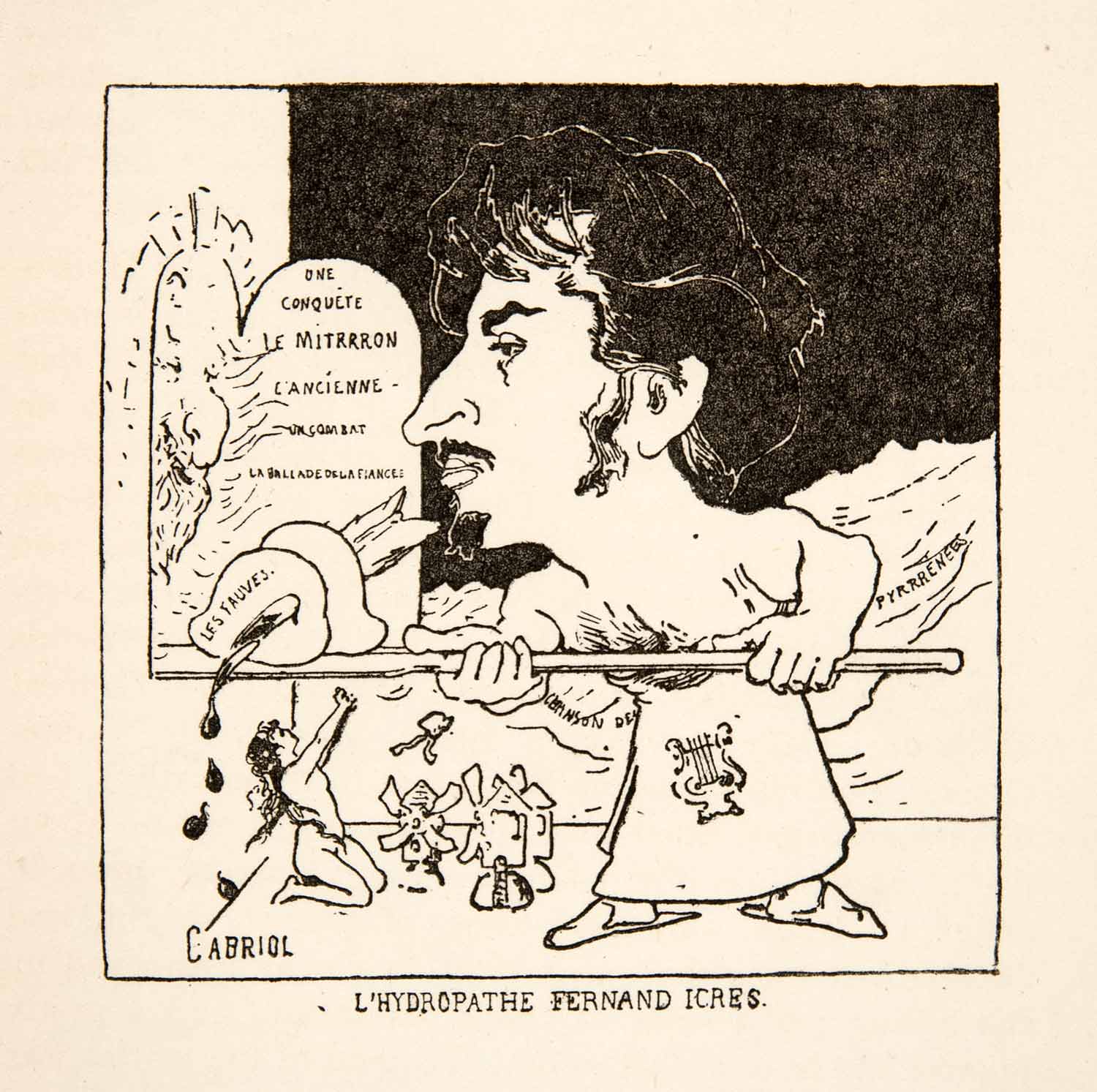 This is an original 1927 black and white relief line-block print caricature portrait of Fernand Icres, who was a French writer that used the pseudonym of Antione Fernand Cresy.