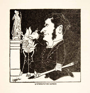 This is an original 1927 black and white relief line-block print caricature portrait of Eugéne Bataille, also known as Sapeck, who was a French artist in the Incoherents movement.