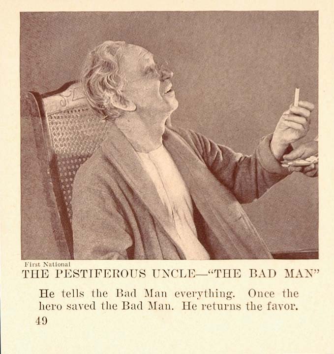 This is an original 1927 print of a scene from Edwin Carewe's The Bad Man (1923) with Holbrook Blinn as Pancho Lopez, Jack Mulhall as Gilbert Jones, Walter McGrail as Morgan Pell, Enid Bennett as Mrs. Morgan Pell, Harry Myers as Red Giddings, and Charles Sellon as Uncle Henry.