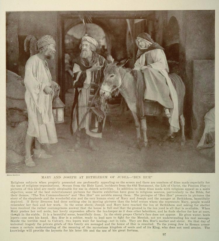 This is an original 1927 print of a scene from Fred Niblo's Ben Hur: A Tale of the Christ (1925) with Ramon Novarro as Judah Ben-Hur, Francis X. Bushman as Messala, May McAvoy as Esther, Betty Bronson as Mary, and Winter Hall as Joseph.