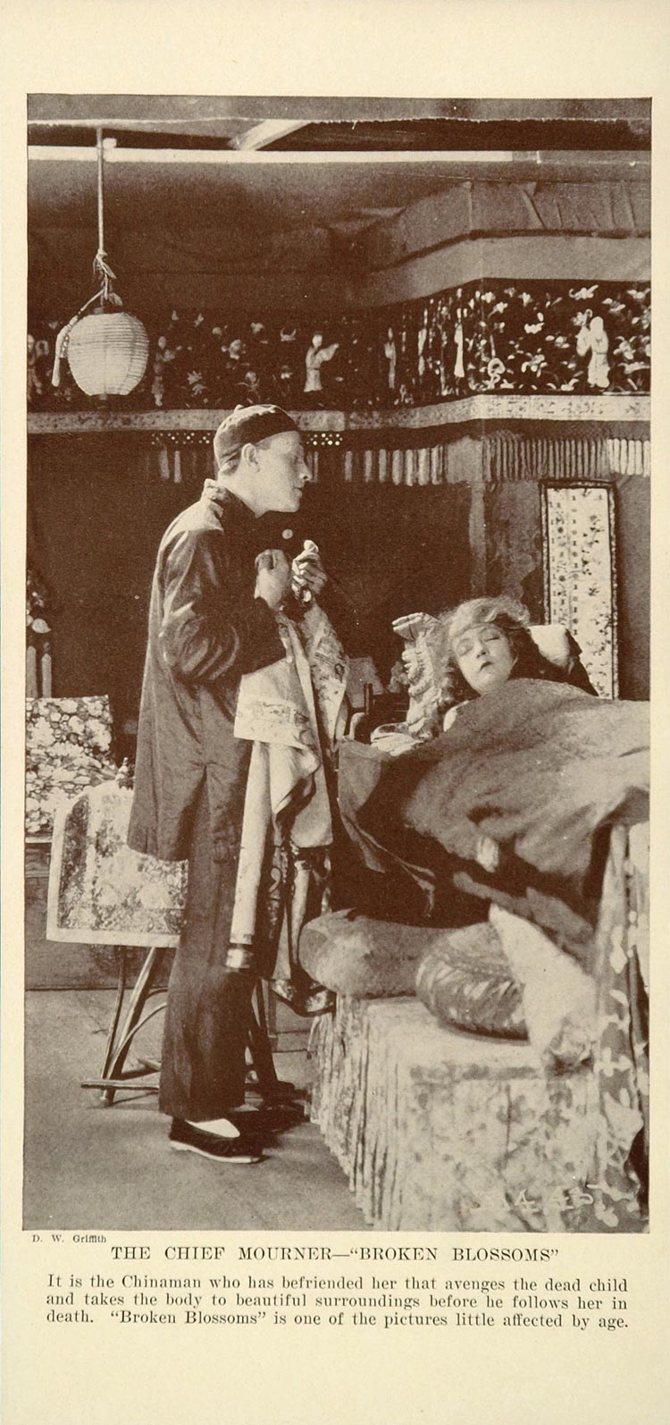 This is an original 1927 print of a scene from D.W. Griffith's Broken Blossoms (1919) with Lillian Gish as Lucy Burrows and Richard Barthelmess as the Chinaman Cheng Huan.