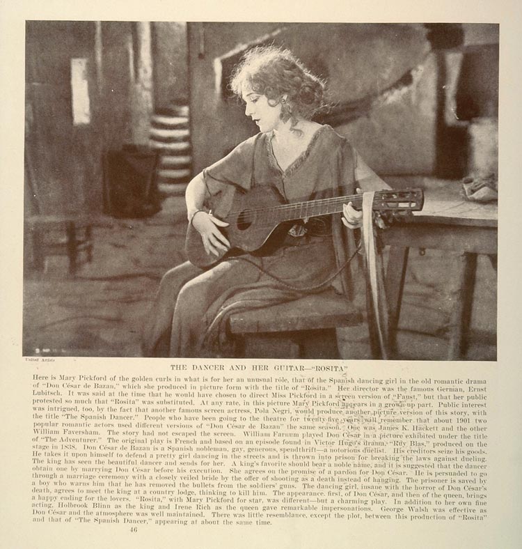 This is an original 1927 print of a scene from Ernst Lubitsch's Rosita (1923) with Mary Pickford as Rosita, a street singer.