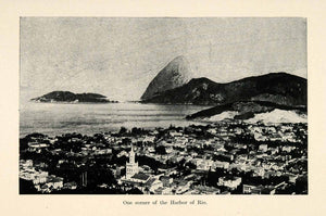 This is an original 1927 halftone print of one corner of the Harbor of Rio de Janiero, the capital of Brazil.