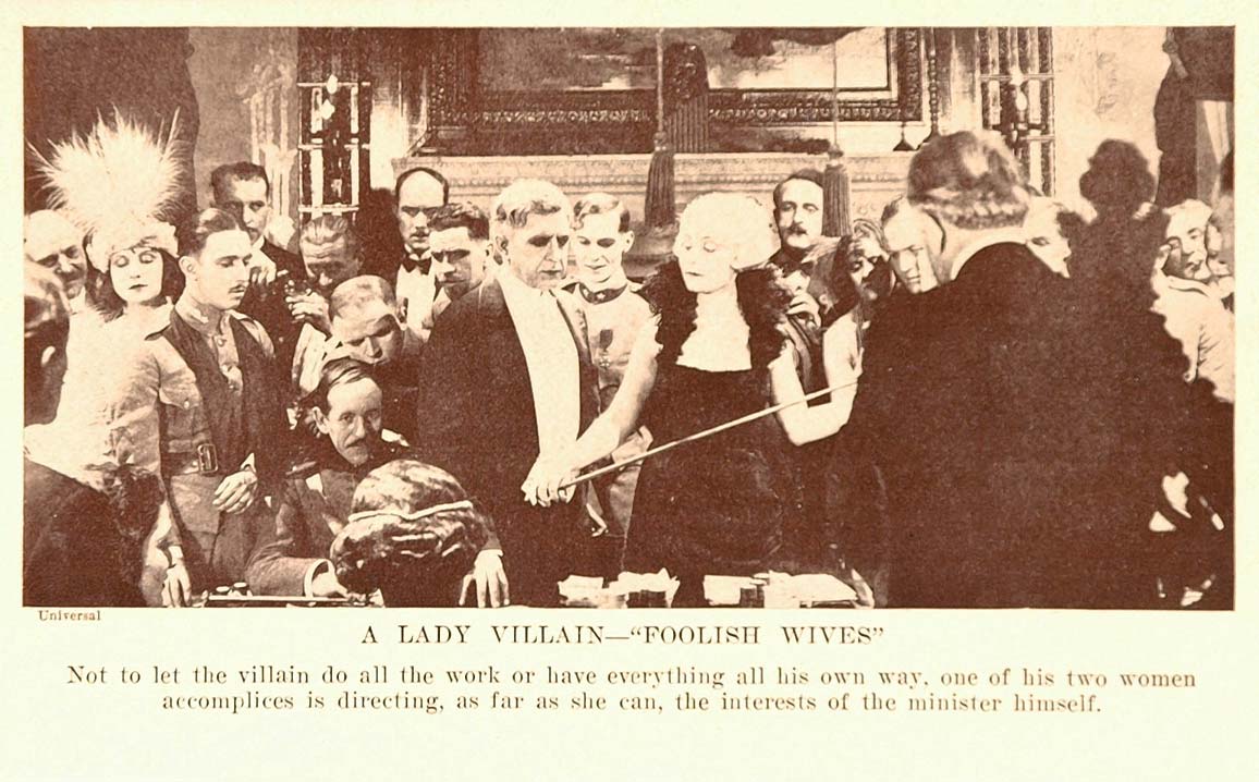 This is an original 1927 print of a scene from Erich von Stroheim's Foolish Wives (1922) with Rudolph Christians as Andrew J. Hughes, Miss DuPont as Helen Hughes, his wife, Maude George as Her Highness Olga Petchnikoff, Mae Busch as Princess Vera Petchnikoff, and Erich von Stroheim as their cousin, Count Wladislaw Sergius Karamzin.