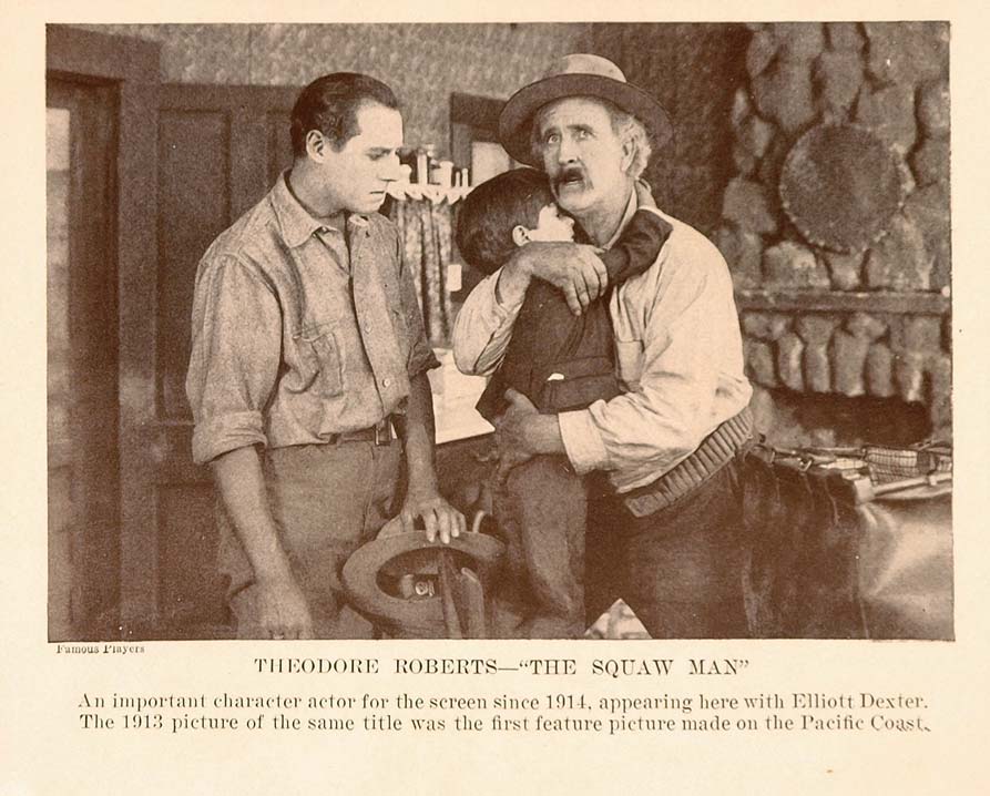 This is an original 1927 print of a scene from Cecil B. DeMille's The Squaw Man (1918) with Theodore Roberts as Big Bill and Elliott Dexter as Jim Wynnegate.