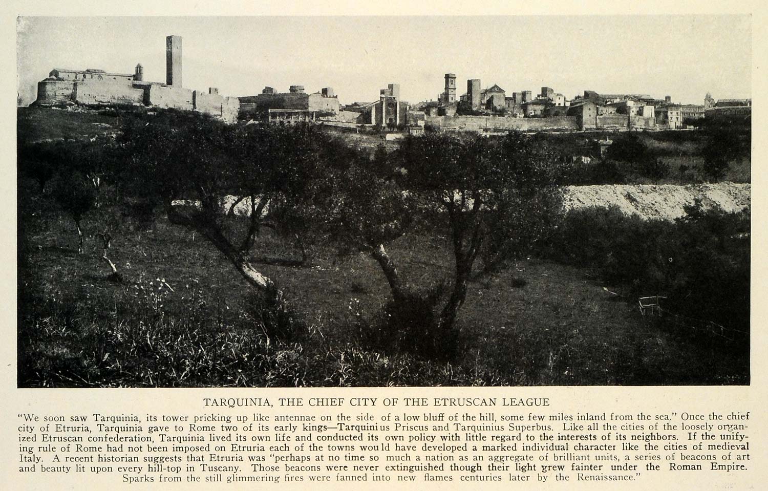 This is an original 1927 halftone print of Tarquinia, an ancient city in the providence of Viterbo in the Lazio region of Italy.