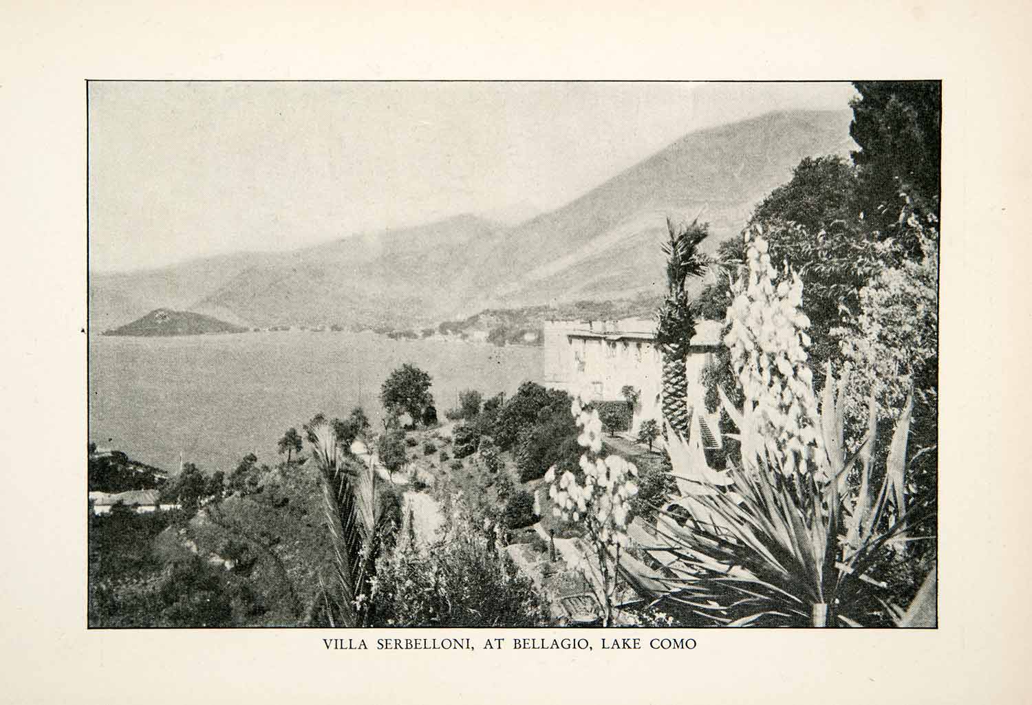 This is an original 1927 black and white halftone print of what is known today as the Rockefeller Foundation's Bellagio Center overlooking Lake Como in Bellagio, Italy.