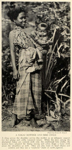 This is an original 1928 halftone print of a Sakai mother from Malaysia with her child in a sling.