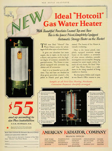 This is an original 1928 color print ad for the Ideal Hotcoil Gas Water Heater from American Radiator Company.