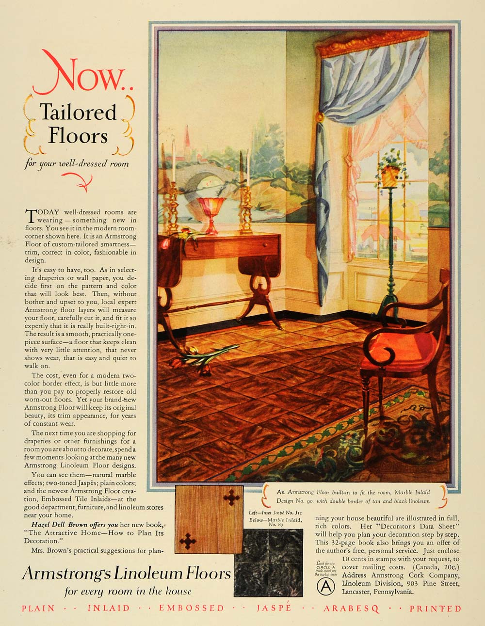 This is an original 1928 color print ad promoting the Armstrong's Linoleum Floors from Armstrong Cork Company located at 903 Pine Street, Lancaster, Pennsylvania.