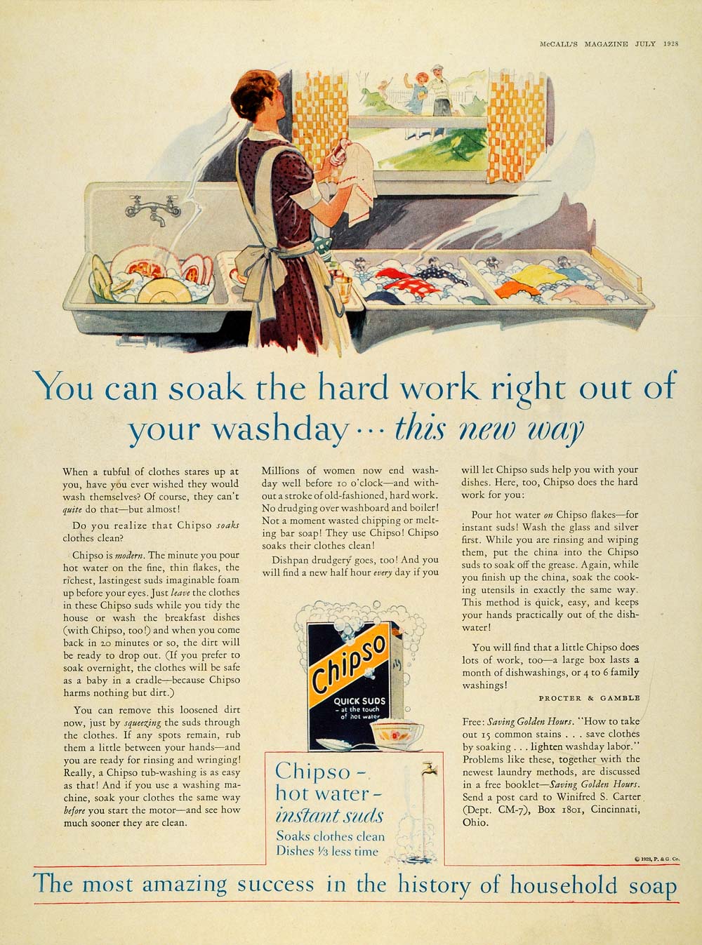 Keywords specific to this image: Vintage Advertising, Winifred S. Carter, Cincinnati, Household Chores, Cleaning Products