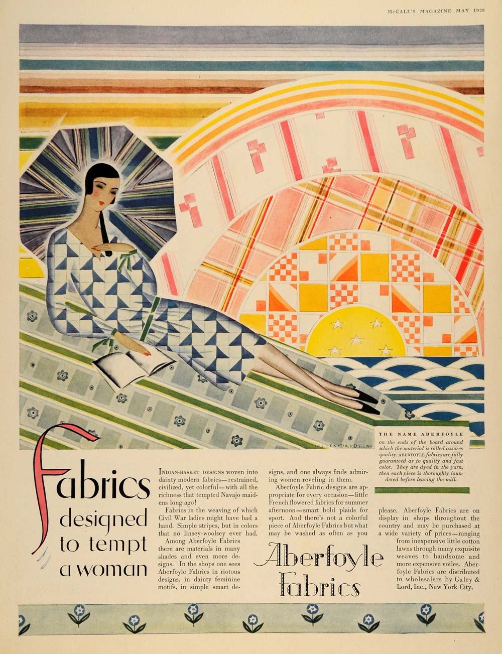 This is an original 1928 color print ad promoting the Aberfoyle Fabrics from Galey & Lord, Incorporation located in New York.