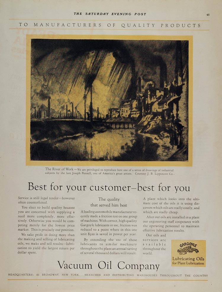 1928 Ad GARGOYLE Vacuum Oil Joseph Pennell River Work - ORIGINAL GAS1