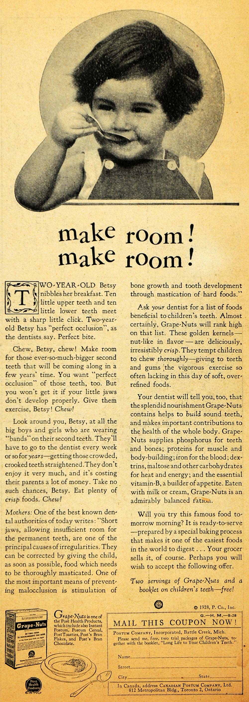 Keywords specific to this image: Vintage Advertising, Coupon, Malocclusion, Mastication, Children, Child, Dentist-Recommended