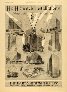 This ad features an image of the Davis Hotel, Sheridan, Bronpton Apartment Buildings, Jackson Towers Apartment Hotel, Chicago Union Station, Mid-West Athletic Club and Medical & Dental Arts Building.