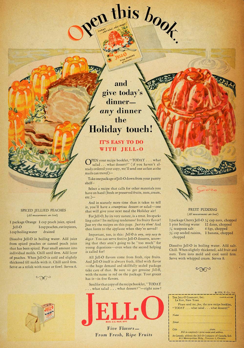 1928 Ad Jell-O Holiday Touch Fruit Dessert Mold Recipes - ORIGINAL HOH1