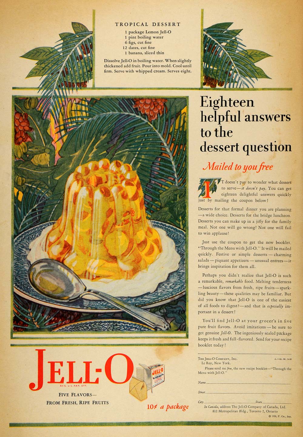1928 Ad Jell-O Tropical Dessert Mold Recipe Pricing - ORIGINAL ADVERTISING HOH1