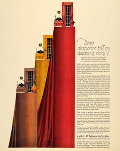 This is an original 1928 color print ad for Lesher, Whitman & Company, located at 881 Broadway in New York City. This particular ad features the company's exquisite draperies for superior household decor.