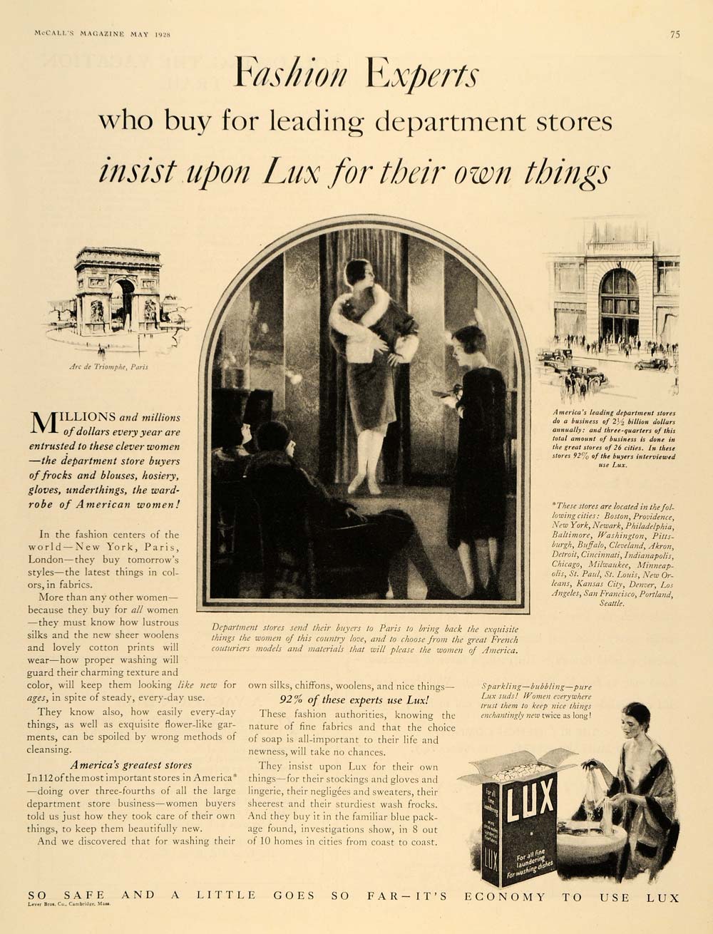 This is an original 1928 black and white print ad for the Lux washing powder soap from Lever Bros. Company located in Cambridge, Massachusetts.