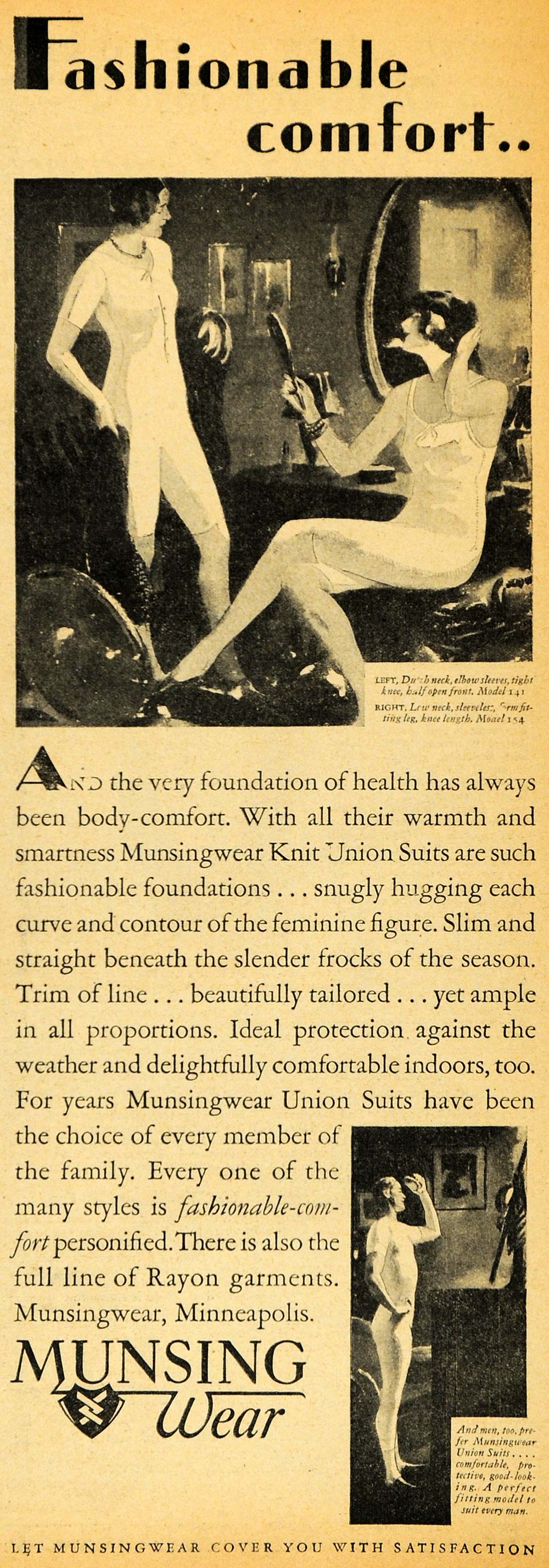 This is an original 1928 black and white print ad for Munsingwear Union Suits undergarments.