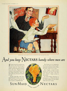 This is an original 1928 color print ad for Sun Maid Necters from the Sun-Maid Raisin Growers of California.