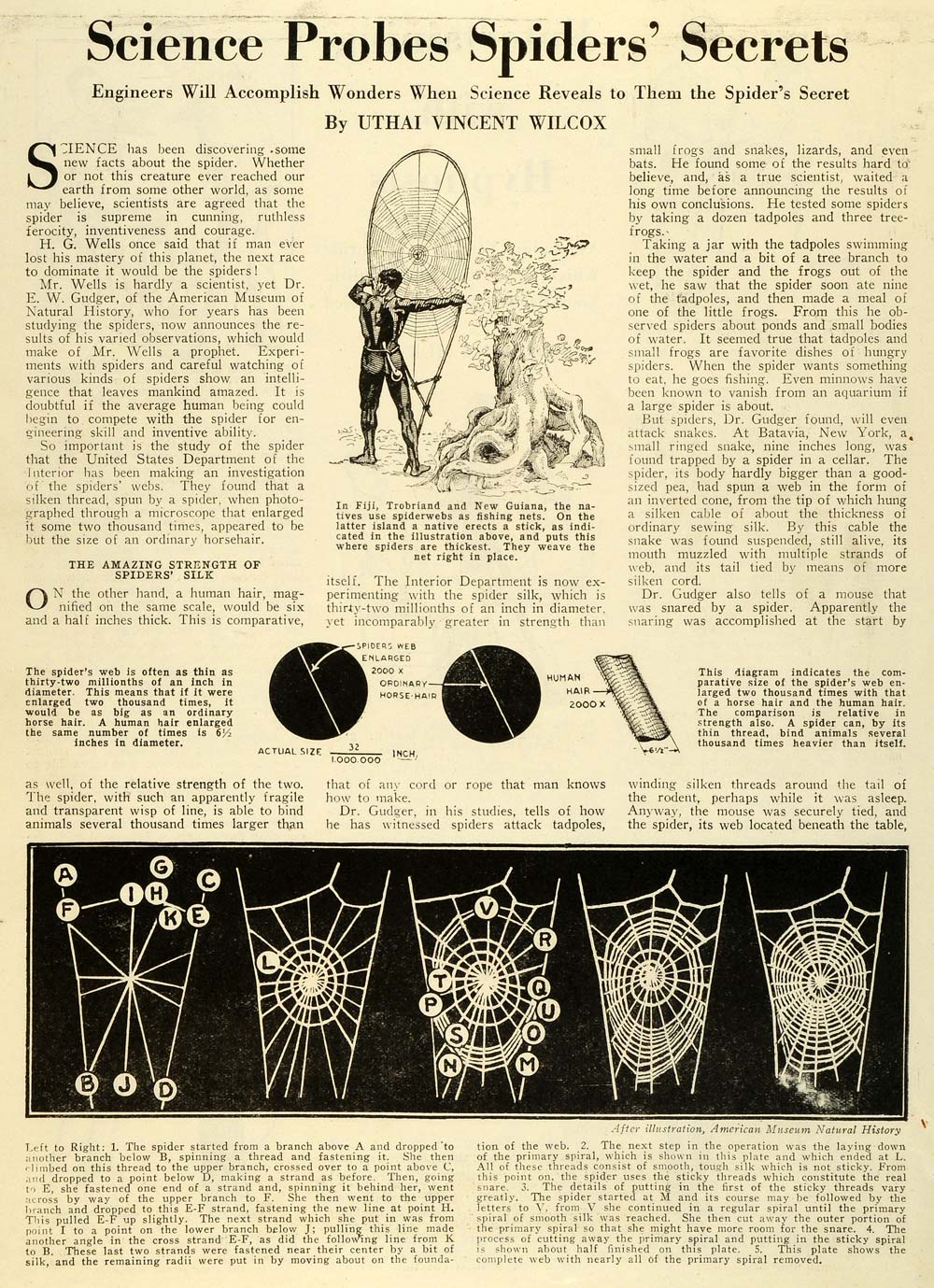 Science Probes Spiders' Secrets: Engineers Will Accomplish Wonders When Science Reveals to Them the Spider's Secret.