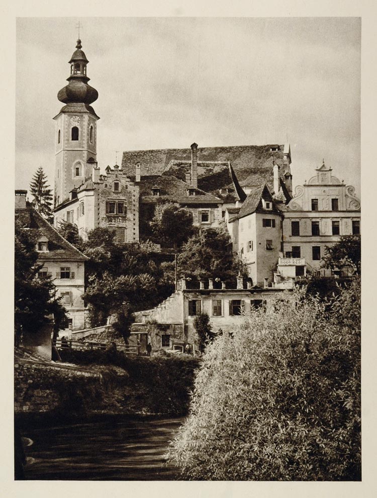 1928 Clock Tower Town Buildings Frohnleiten Austria - ORIGINAL PHOTOGRAVURE GER1