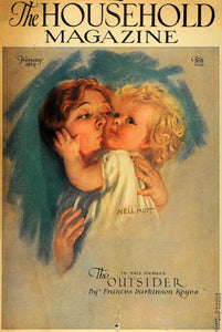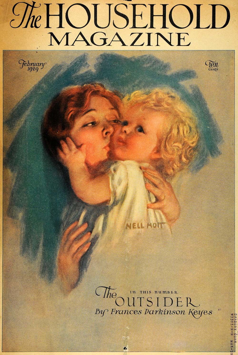 This is an original 1928 color cover for the February issue of The Household Magazine, featuring an image by Nell Hoit of a mother kissing her baby daughter.CONDITION