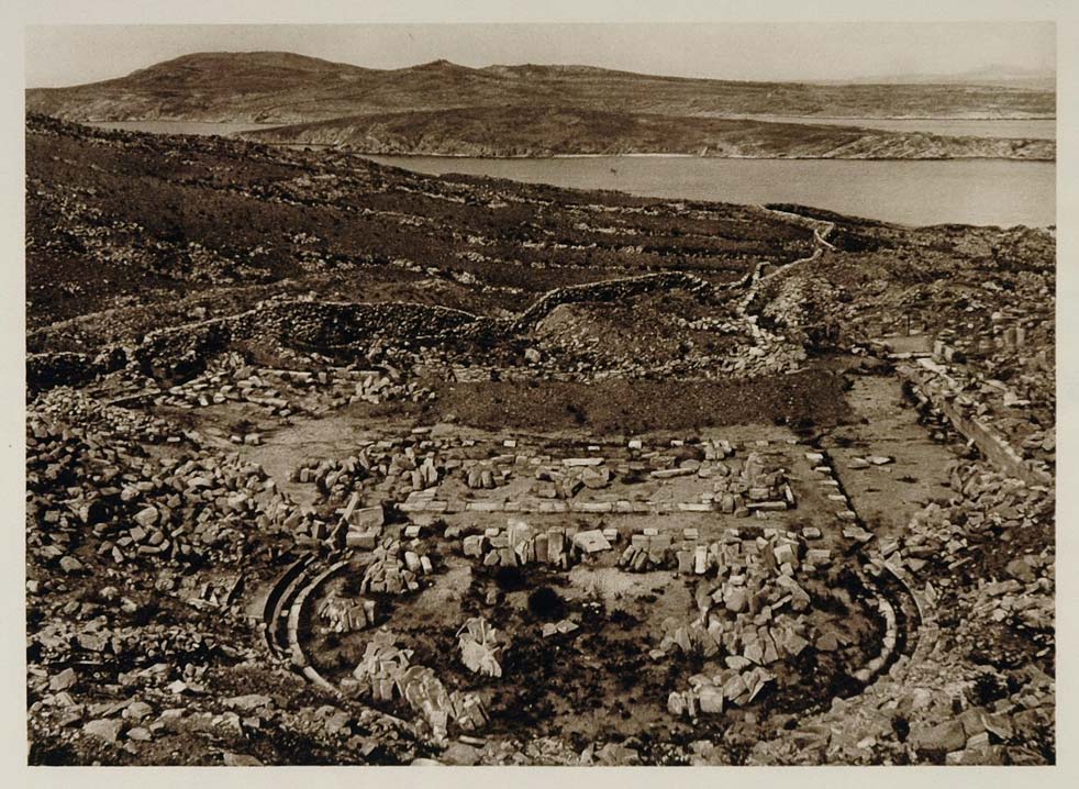 1928 Delos Theatre Ruins Bird's Eye View Photogravure - ORIGINAL GREECE