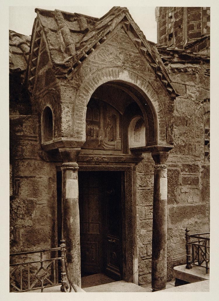 1928 Door Panagia Megalo Monastiri Church Athens Greece - ORIGINAL GRC2