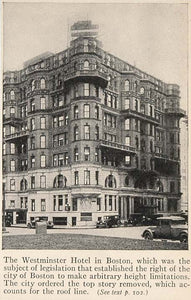 1928 Halftone Print Westminster Hotel Building Boston ORIGINAL HISTORIC SKY