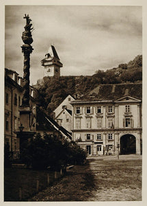 1928 Karmelitenplatz Graz Austria Carmelites Square - ORIGINAL PHOTOGRAVURE AUS2