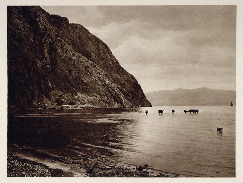 1928 Kryoneri Beach Harbor Sea Greece Photogravure - ORIGINAL GREECE