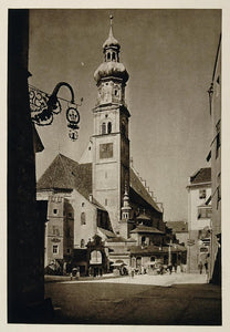 1928 Parish Church Tower Street Hall Tyrol Austria - ORIGINAL PHOTOGRAVURE GER1