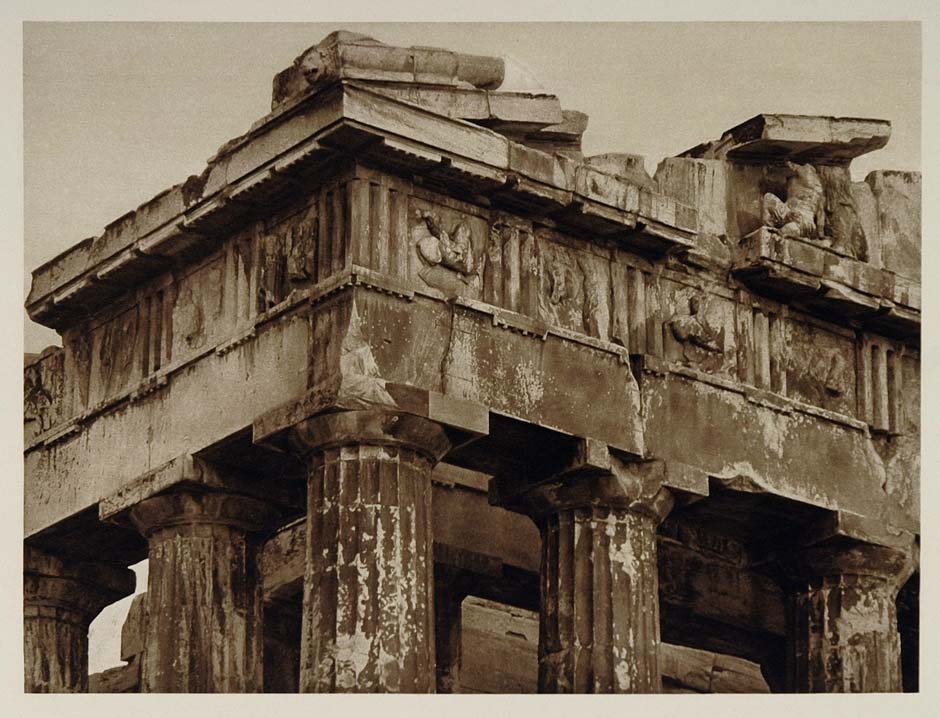 1928 Parthenon Gable Corner Acropolis Athens Greece - ORIGINAL GREECE