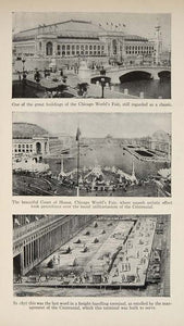 This is an original 1928 halftone print with two images from the 1893 Chicago World's Fair including the famous Court of Honor, and one image of the freight handling terminal at the Centennial Exposition of 1876.