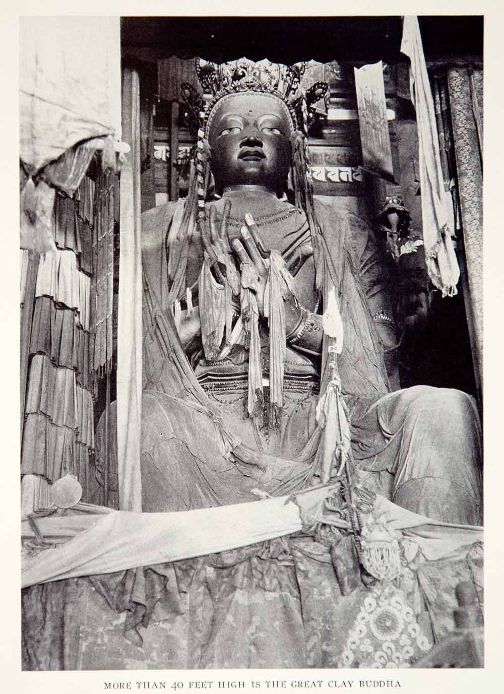 This is an original 1928 black and white halftone print of the Great Clay Buddha in the Temple for the Recompense of Kindness in China.