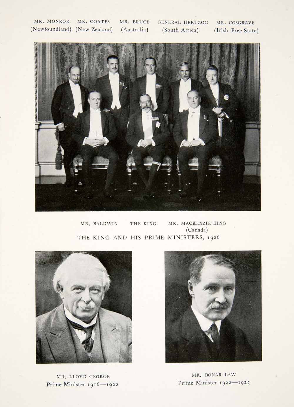 This is an original 1928 black and white halftone print of George Frederick Ernest Albert (June 3, 1865-January 20, 1936), George V King of the United Kingdom and the British Dominions with his prime ministers.