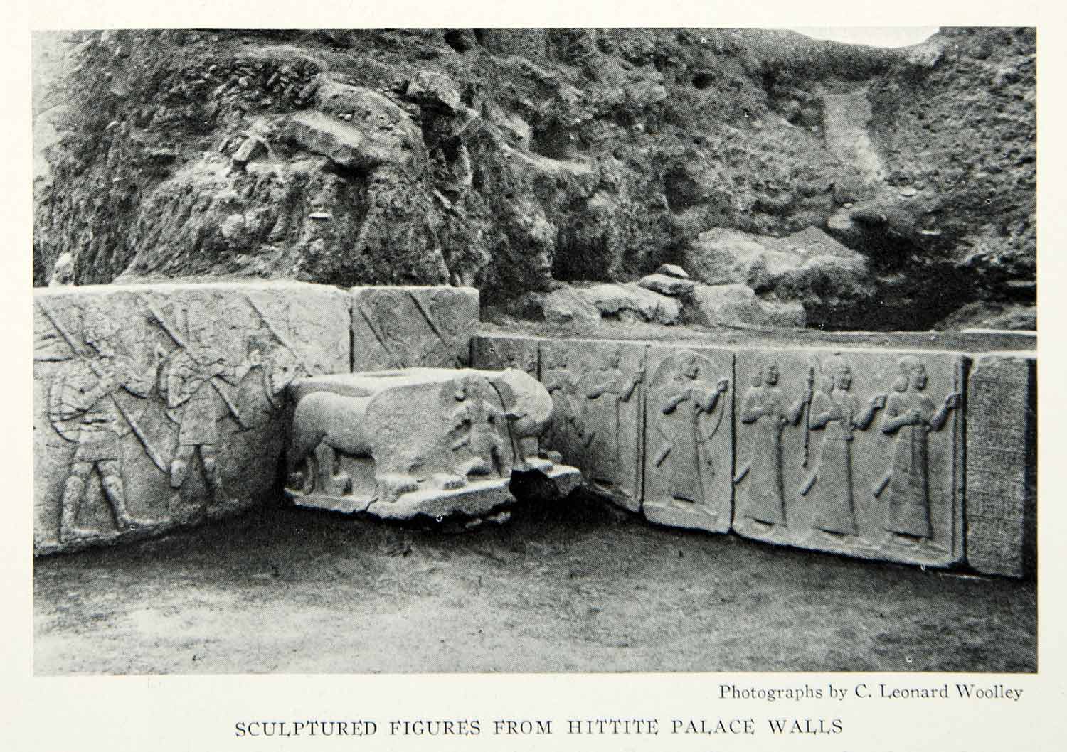This is an original 1928 black and white halftone print of a section of wall in the Hittite city of Carchemish, luckily well preserved amongst the ruins of the destroyed ancient city.