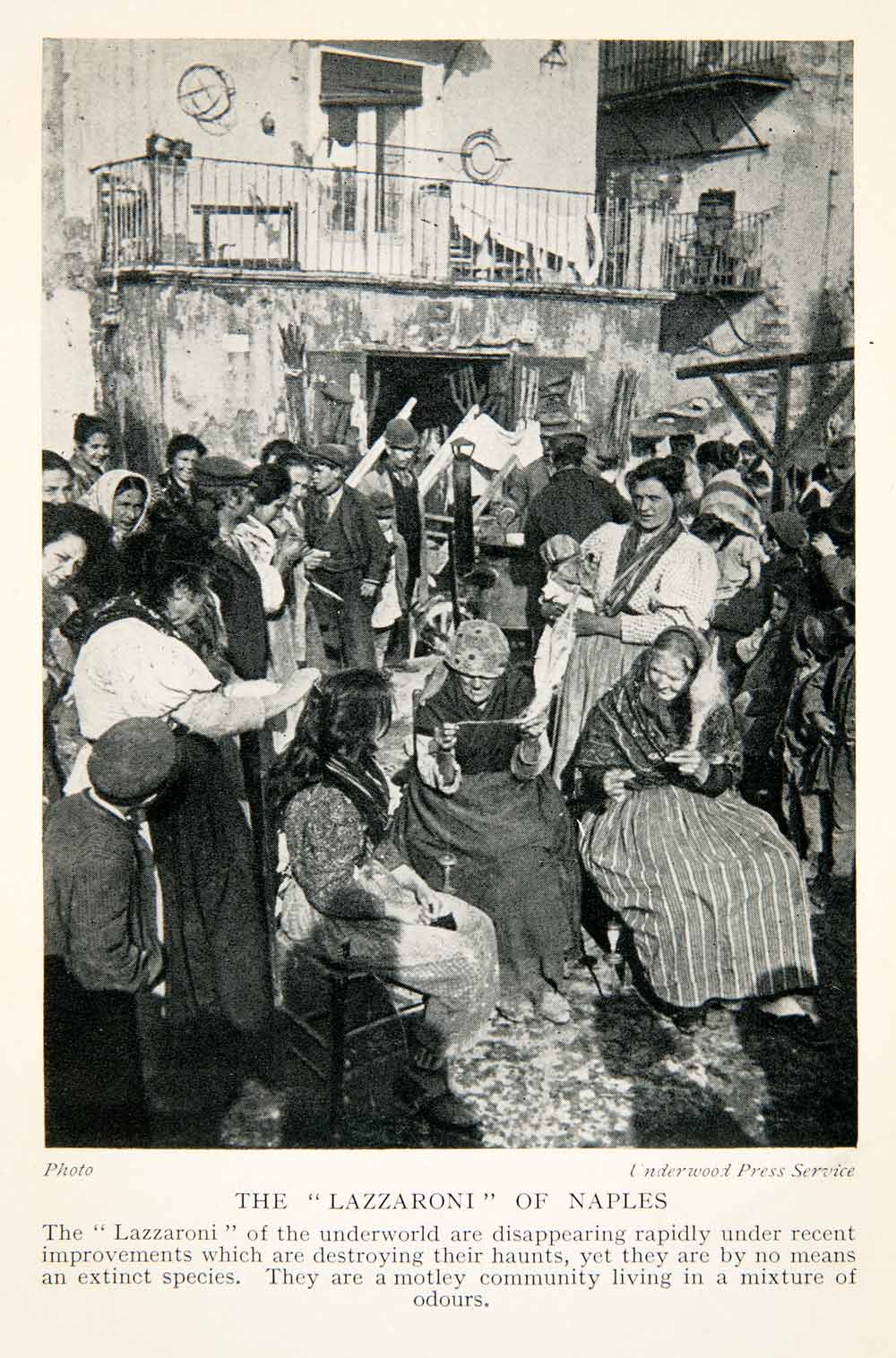This is an original 1928 black and white halftone print of the Lazzaroni ethnic group living in the city of Naples, Italy.