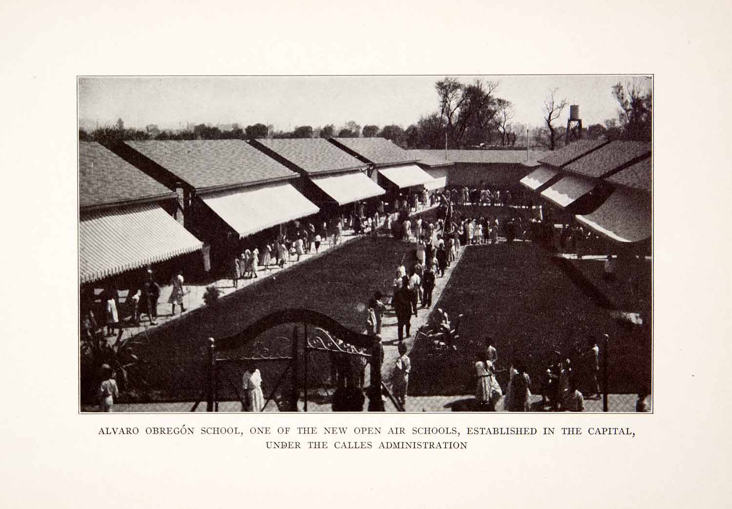 This is an original 1928 black and white halftone print of the Alvaro Obregón School in Mexico City. Named after the 39th President of Mexico, the school was built under the administration of Plutarco Elias Calles, the personally selected successor of Obregón.