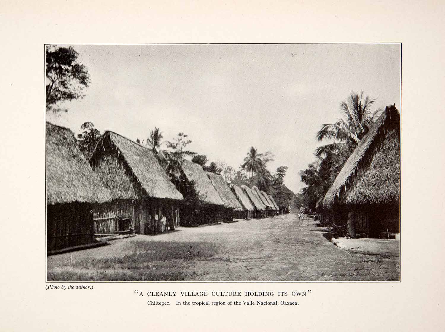 This is an original 1928 black and white halftone print of the small village of Chiltepec, In the Valle Nacional municipality of Oaxaca, in Southern Mexico.