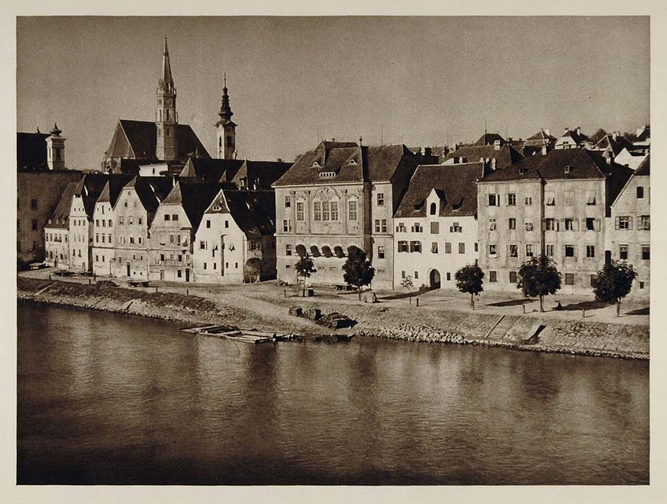 1928 Quay River Enns Steyr Upper Austria Photogravure - ORIGINAL AUS2